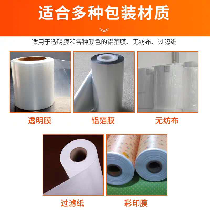 適應(yīng)包材:紙、BOPP、鋁箔、滌綸/鍍鋁/、尼龍/、無(wú)紡布、濾紙等復(fù)合材料
